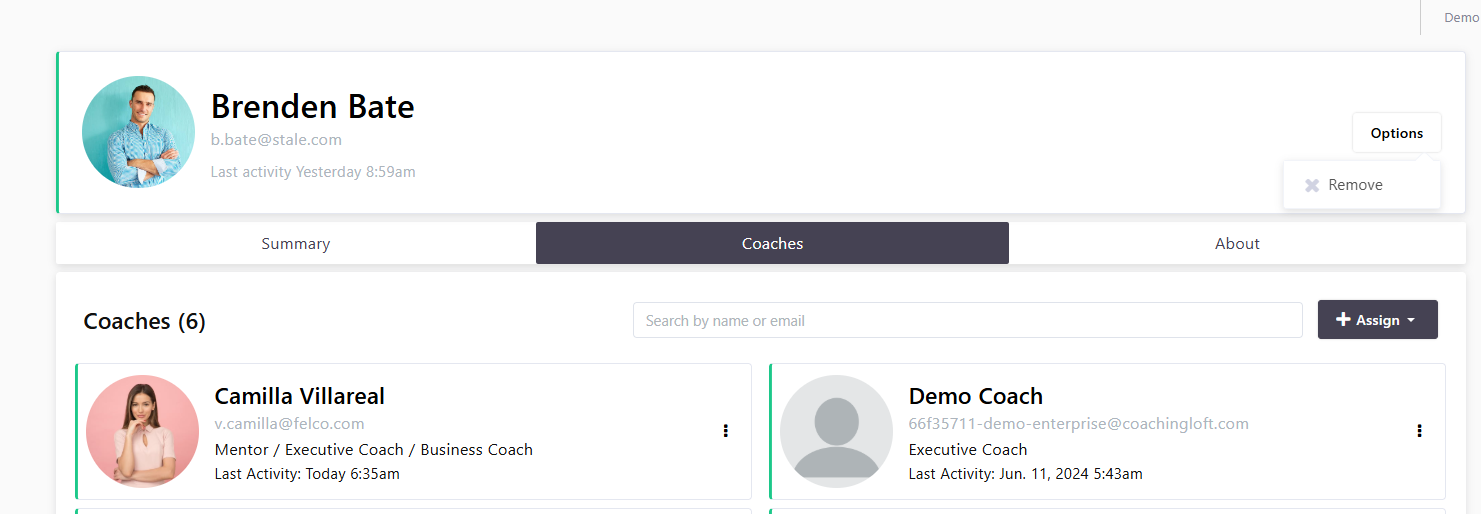 Use this section to update a coachee’s profile details, view their assigned coaches, and make any necessary adjustments to their account.